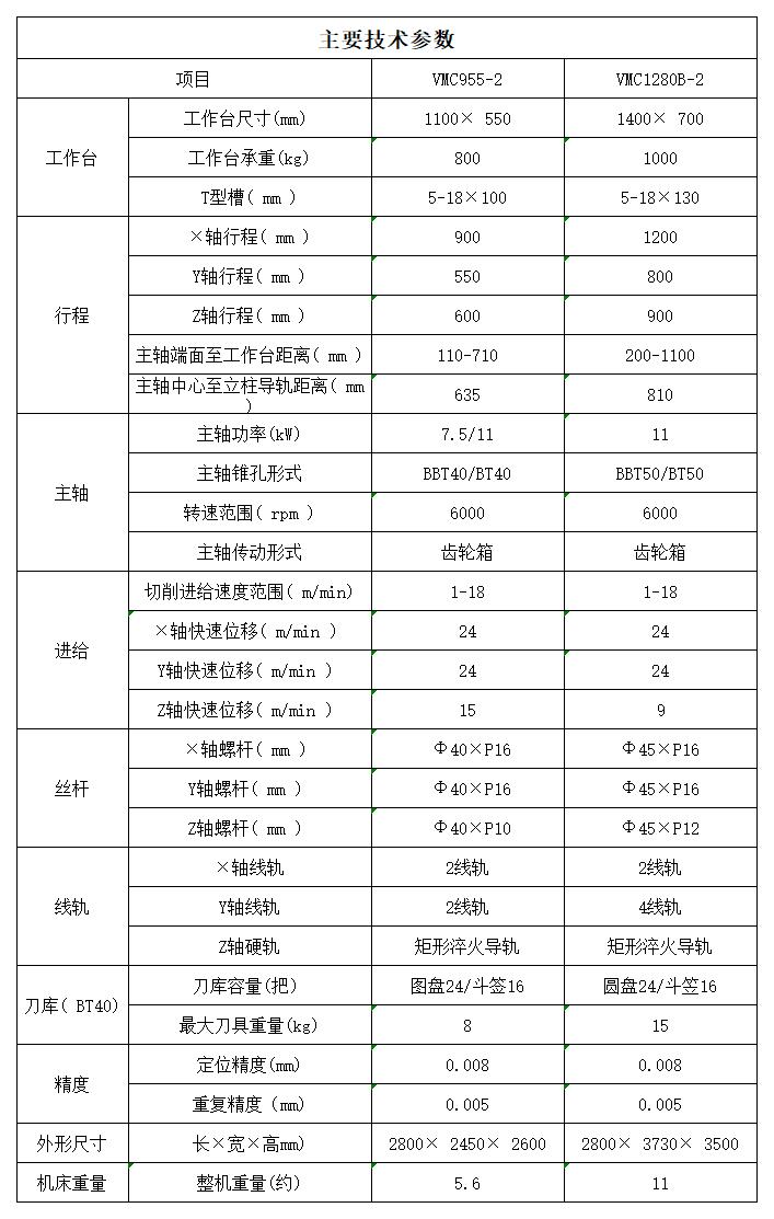 1 、VMC系列線軌齒輪箱式加工中心,配置數(shù)控高低兩檔,無(wú)極變速主軸箱,既可以滿足低速重切削需求,又能滿足高速精細(xì)加工要求。